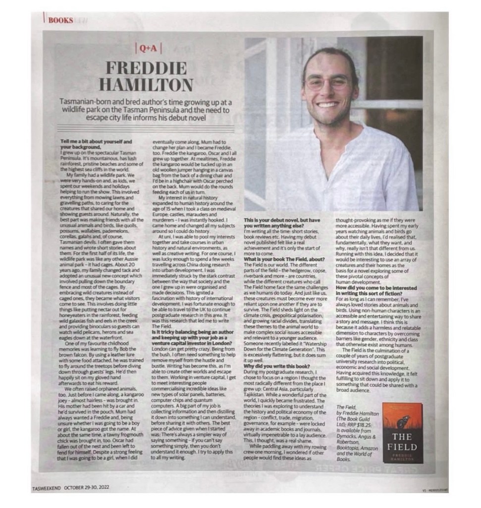 Q&A, TasWeekend Magazine / 29 Oct 22